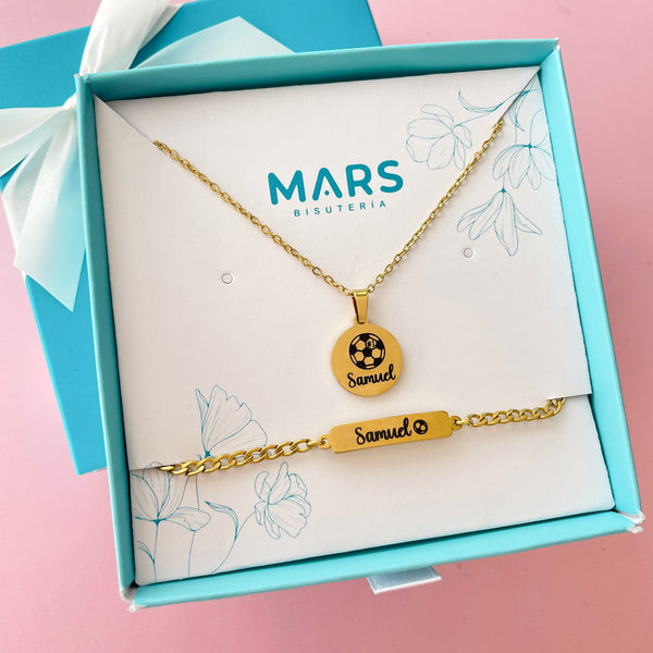 Incluye 1 collar y 1 pulsera personalizado con el nombre